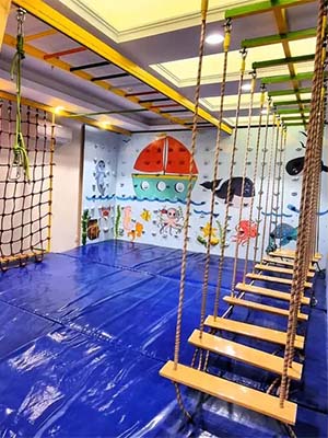 - پر از وسایل بدنی مثل سرسره، استخر توپ، ترامپولین، تونل، پل معلق و مسیرهای حرکتی
