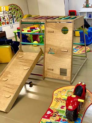 - وسایل نرم، ایمن و ساده (تاب کوچک، لگوهای بزرگ، پازلهای ساده)